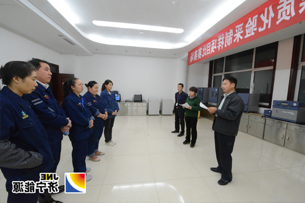 集团公司董事长虢洪增、工会副主席张洁茹陪同市职工技术协会主任张存瑞、市总工会生产保护部部长赵庆国在比赛现场视察