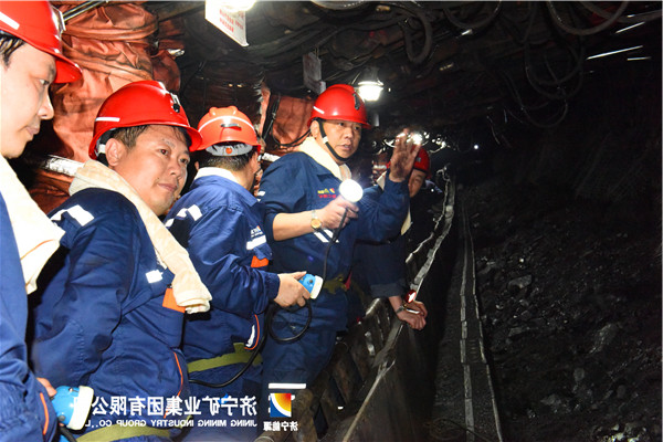 张广宇一行首先参观了该矿“民心工程”——井下制冷硐室,随后乘坐“猴车”奔赴该矿1311工作面。张广宇边参观边与各矿矿长热烈探讨关于安全、生产、技术等方面的问题,提出了“暖心”的要求和意见。